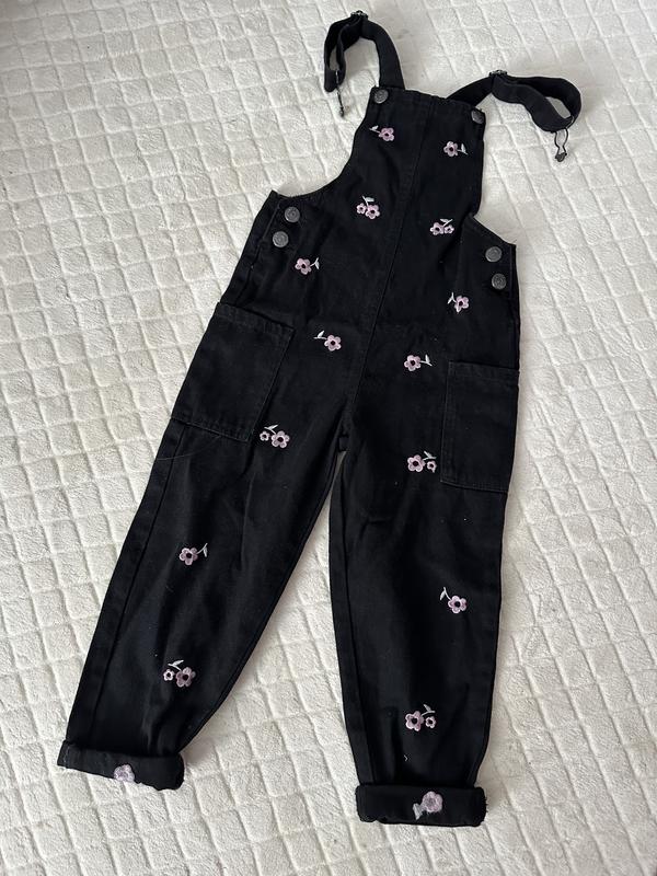 Джинсовий комбінезон чорного кольору з квітами. Завдяки вільному крою і зручним кишеням підійде для будь-якої події. Виготовлений з джинсу, що забезпечує комфорт та стиль.