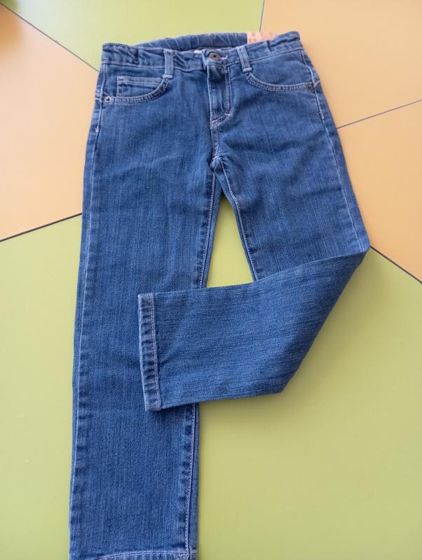 новые джинсики на девочку, рост указан 112, в поясе есть утяжка. замеры: полуобхват пояса 27, длина 62, бедра 33, немножко тянется ткань
