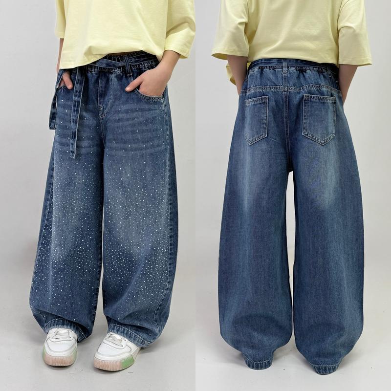 Джинси BAGGY прикрашені яскравим камінням виробник Китай тканина котон багато кишень В поясі під резинку та поясок СУПЕР ЯКІСТЬ! зріст/розмір/довжина/крок/пот/поб похибка+-2см 140/28/89/58/27/51 146/29/92/60/28/52 152/30/95/63/28/52 158/31/98/66/29/53 164/32/102/68/30/54