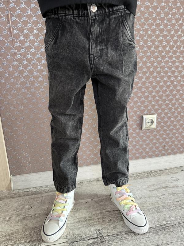 В ідеальному стані джинси Мом. Колір Графіт, пояс на резинці і на кнопці. Є 2 розміри : 122-128, 128-134. Заміри 122-128: Довжина 70 Шаг 48 Пояс 27 Поб 41 Заміри 128-134: Довжина 72 Шаг 50 Пояс 30 Поб 42 Відправлю Укр поштою і Новою Поштою, після часткової або повної передоплати