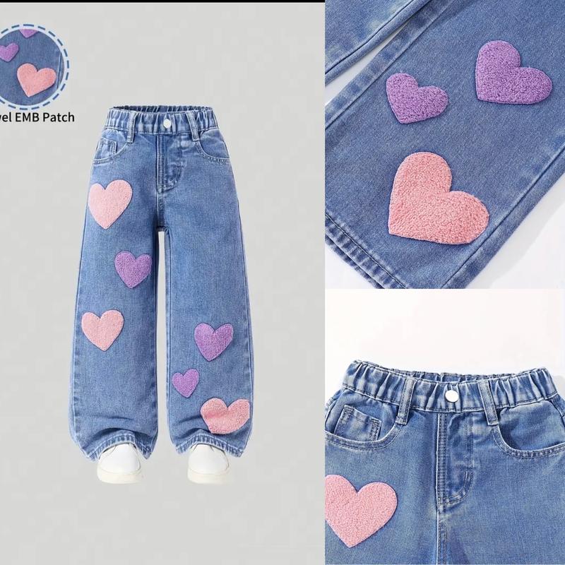 Стильні джинси середньої плотності, прекрасної якості та з якісною простроченою аплікацією, еластичний зручний пояс, актуальний фасон, гарно лягають на фігурі, на 4-5років 110см зріст