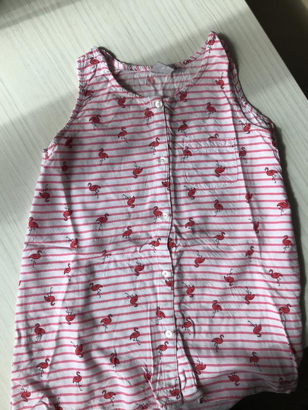 Маечка-рубашечка на девочку 10-12 лет С принтом фламинго Удлинённая