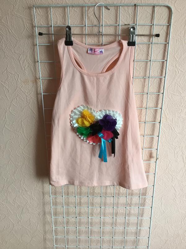 Яркая, летняя майка для девочек, производство Турции, отличного качества, идеально подходит для жаркого лета и под любой низ.Размер идёт на рост 146-152, с переди на майке выполнена композиция из цветов