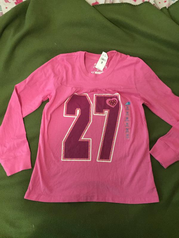 Симпатичный регланчик на девочку 7/8 лет, на шее и руковах резиночка, на груди собраны складочки , рисунок наклейка, замеры по запросу