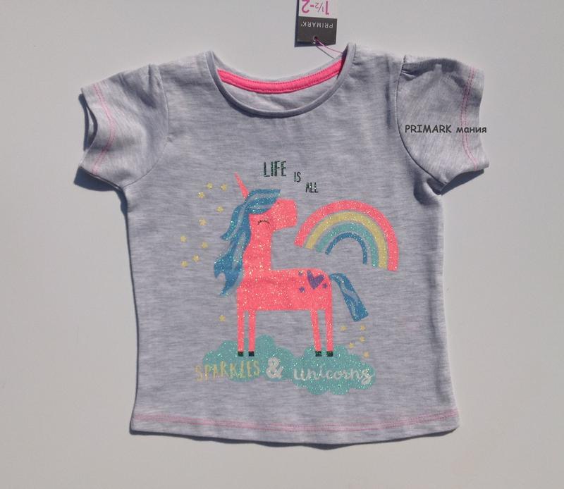 Primark Футболка для девочки "Единорог" Размеры: 92 см (1.5-2 года), 110 см (4-5 лет), 116 см (5-6 лет) 98% хлопок, 2% полиєстер Весь ассортимент детских футболок можно посмотреть здесь https://shafa.ua/uk/my/clothes?catalog=dlya-devochek%2Ffutbolki-i-mayki