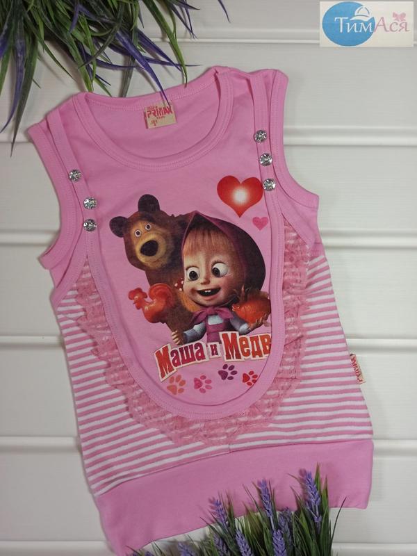 ТОВАР У НАЯВНОСТІ !!! !!! Вік вказаний приблизно, звертайте увагу на заміри Красиві, нарядні, якісні майки, відмінна якість! Виробництво Турція. Майка"Маша і ведмідь ", колір рожевий: -104/4 - довжина 43 см, ширина 28 см - 3-4 років -116/6 - довжина 48 см, ширина 32 см - 5-6 років Оплата: - на розрахунковий рахунок ФО-П Доставка: - Укрпошта (доставку сплачуєте на місці отримання посилки). - Нова пошта (доставку сплачуєте на місці отримання посилки). Відправка товару виконується в робочі дні.