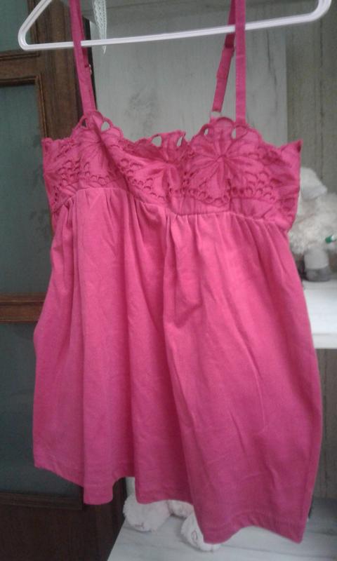 Майка насыщеного розового цвета (на фото бледнее вышло). Брители регулируются. Сзади мягкая резинка (видно на фото)