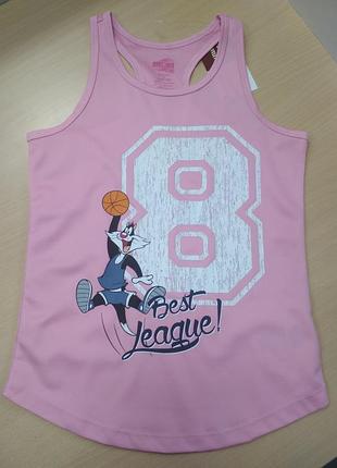 При самовывозе скидка 5%. Код товара 16977. Размер 134-140. Нежно-розовая майка с рисунком от бренда Looney Tunes.