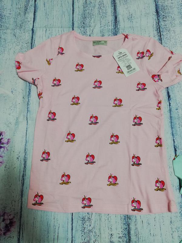 Футболки для девочек хорошего качества от фирмы Glo-Story, Венгрия Размерный ряд 110-120-130-140 - 150 В ростовке 2 цвета 140 длина 53 пог38 розовая продана 150 длина 56 пог 41 розовая