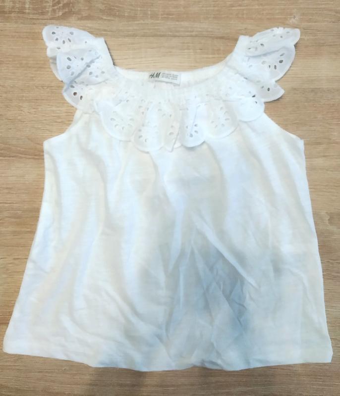 Майка блузка фирмы H&M Состав: 100 % хлопка. Размер 4-6 лет (110/116 см): длина от плеча 44 см, плечико 7 см, ширина между подмышками 37 см, ширина внизу кофты 43 см Размер 6-8 лет (122/128 см): длина от плеча 48 см, плечико 8 см, ширина между подмышками 39 см, ширина внизу кофты 46 см Размер 8-10 лет (134/140 см): длина от плеча 55 см, плечико 8 см, ширина между подмышками 44 см, ширина внизу кофты 51 см №4/2,5