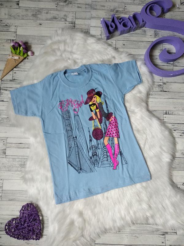 Футболка Hasan baby на дівчинку блакитна з малюнком нова Розмір на 8 років ,зріст 128 см Заміри: Довжина 51 см Рукав 12 см Плечі 30 см ПОГ 36 см ПОТ 35 см колір блакитний склад 95% бавовна,5% лукра Туреччина
