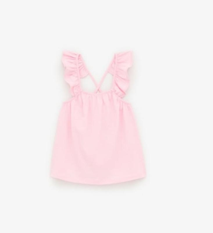 Топ Zara оригинал с Испании в размере 13-14 лет Отличный, натуральный топ- майка для лета В составе 100% котон Пог-38, резинка растягивается Пониза-60 Длина по боковому шву от подмышек-34 от верха бретелек-57