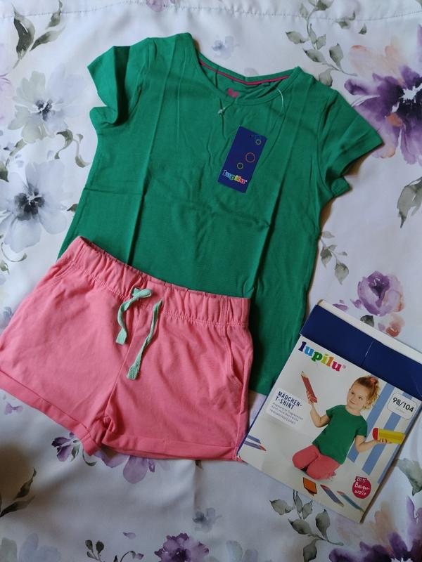 Классный яркий летний комплект !! качество супер х/б!! Германия !! на рост 98-104 футболка ( длина 43сс, пог 32см) шорты по бокам с кармашками ( длина 21см, пот 25см+ хорошо тянется резиночка + затягивается шнурочек)