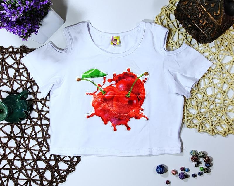 новинка 2020!!! невероятно красивый топ с оголенными плечиками яркой и сочной наклейкой ткань турецкий трикотаж РЕКОМЕНДУЮ!!! размер/длина/пог 158/36/38-1шт 164/38/40-2шт --------------------------------------------- +-1см