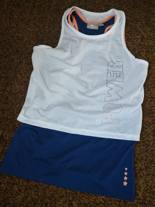 Crane. майка з подвійним ефектом на дівчинку, ріст 146-152 див. 87% поліестер, 13% еластан. пог 38см, довжина по спинці нижньою маєчки 53см, верхній 38см.