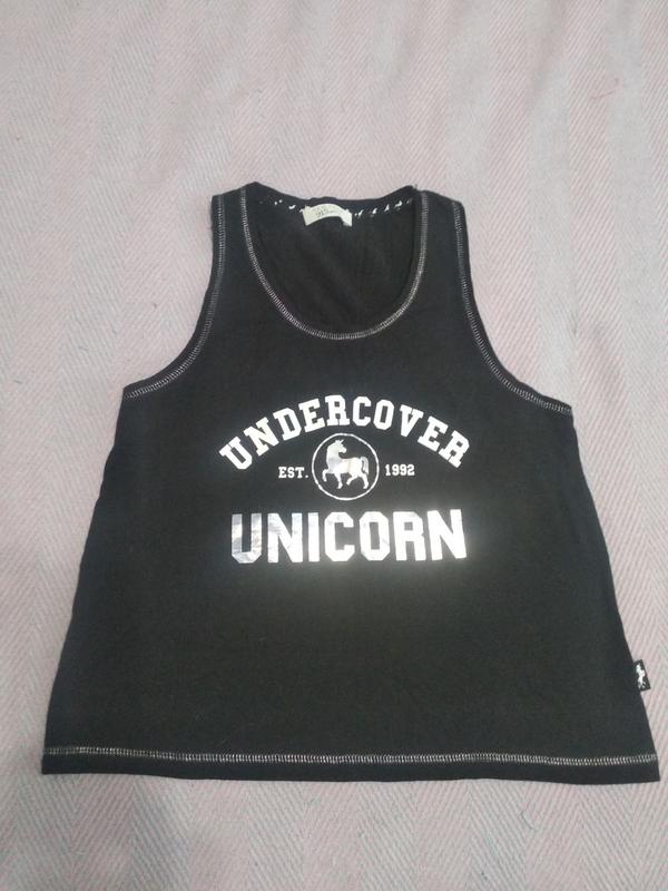 Майка черная трикотажная, по краю серебристая нитка. Размер написано м, скорее всего на 150рост