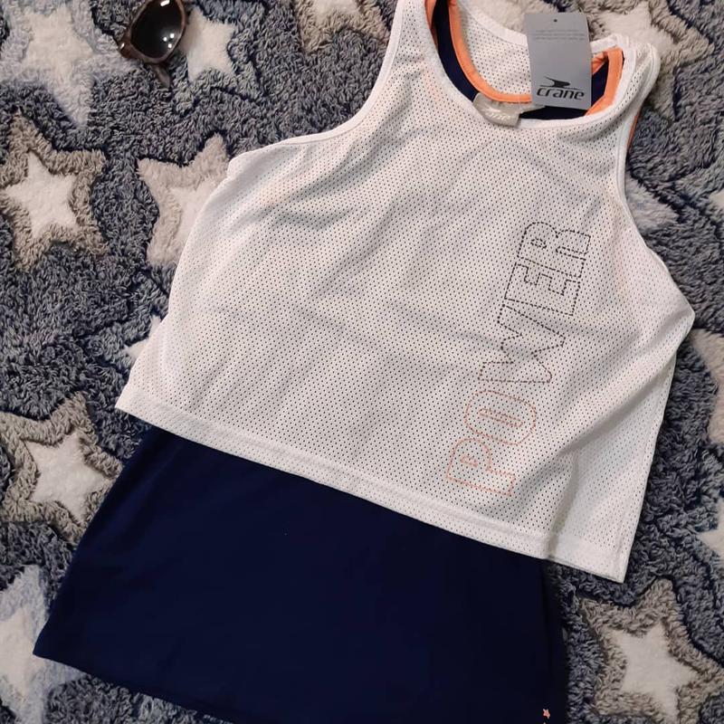 Спортивная майка с двойным эффектом на девочку Crane. Размер 146-152 см. Состав: 87% полиэстер, 13% эластан. Замеры: ПОГ - 38см, длина по спинке нижней маечки 53см, верхней 38см. Отличный вариант для активного отдыха и занятий спортом. Новая, с биркой