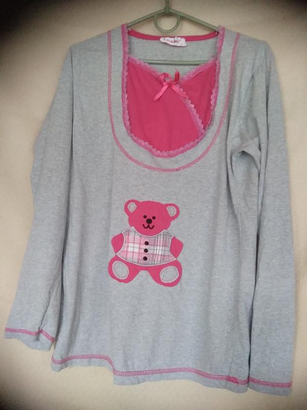 Майка піжамна на розмір L ПОГ 49 см, плечі 38см, довжина 64 см, рукав 60 см. Прохання перед замовленням уточняти деталі. Відправка тільки Укрпоштою!!! З безпечною оплатою не працюю, бо немає технічної можливості