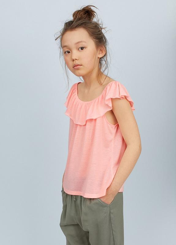 Топ из мягкого трикотажа без рукавов. Слегка прозрачная ткань. Сверху эластичный край и оборка, края отделаны оверлоком. Материал: 100% полиэстер. В наличии размеры: 146-152, 158-164. Полномерные. Замеры: р.146-152: длина от верха 53-54 см, ширина подмышками 44 см. Новые, сток, без бумажной бирки. Доставка: Новая почта, Justin. Предоплата на карту ПриватбанкаМонобанка.