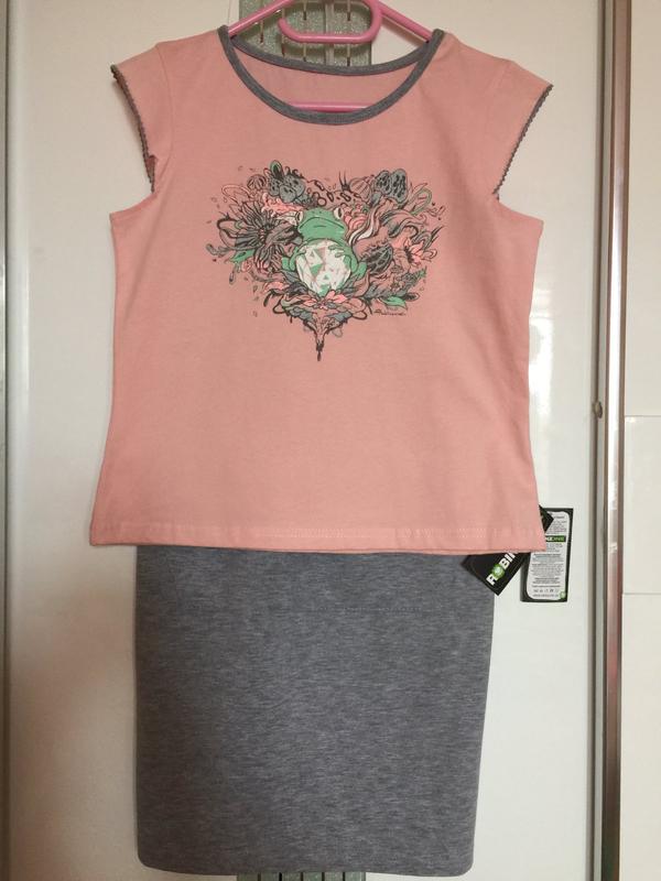 Летний костюм футболка и прямая юбка. Украина Состав 100% хлопок. Размер 146 ширина гр38см.. Прямая юбка 2 кармана цвет серый