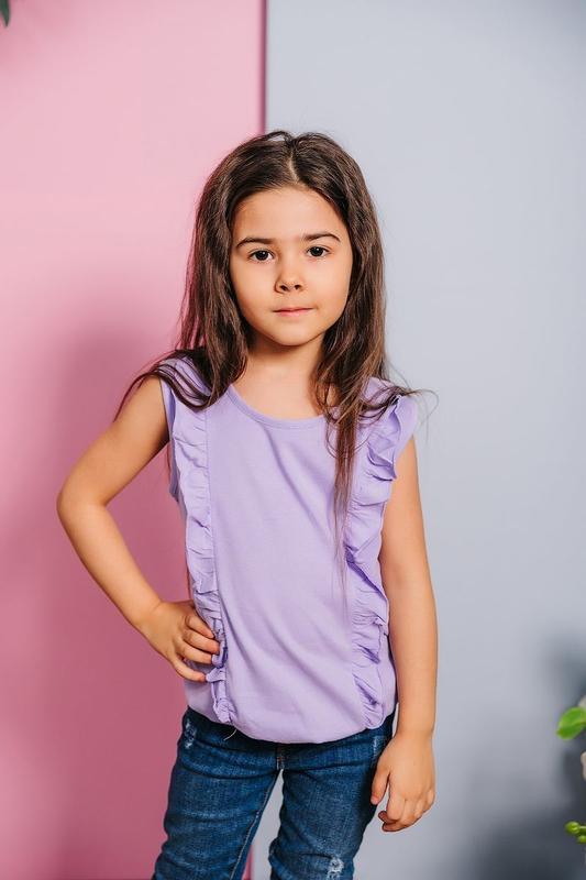 Детская майка для девочки Paty Kids однотонная рюшки сирень Рост 104-110 см длин. 39 см шир. 27 см Рост 116-122 см длин. 43 см шир. 29 см