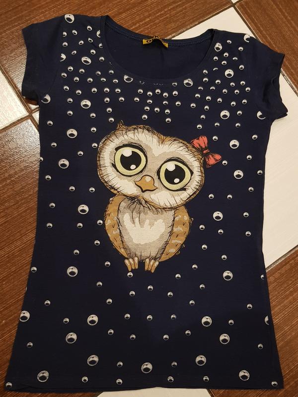 Чудова футболка для дівчинки темно-синього кольору на зріст 158-164 см. На ярлику вказаний розмір S. Купувала доньці в Olko. В ідеальному стані. Made in Turkey. Продаю, бо замала. Висота по спині 58 см, ПОГ 37 см. Склад 90% cotton, 10% elastan.
