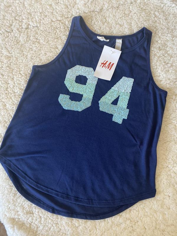 Летняя Майка на девочку от H&M. Надпись 94 выполнена из пайеток. Размер : 146-152 ( 11-12 лет ) Состояние: новая с биркой Замеры⬇️ Длина - 50 см ПОГ - 38.5 В наличии 2 шт одного размера. Цена за одну 80 грн, за две 150 грн