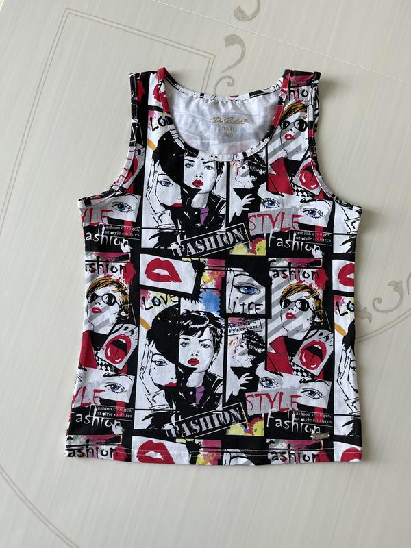 Майка для девочки 10-11 лет, рост 140 см Длина 49 см, ширина 34 см Состав: 95% хлопок, 5% эластан