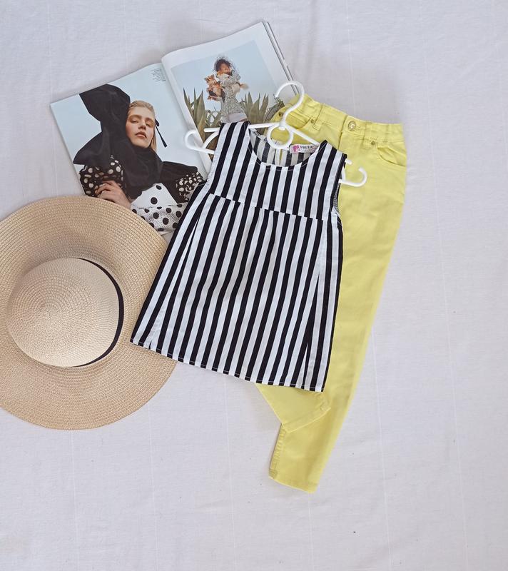 топ в полоску з натурального котону для дівчинки 5-6 років, ПО грудей 32 см, довжина 44 см