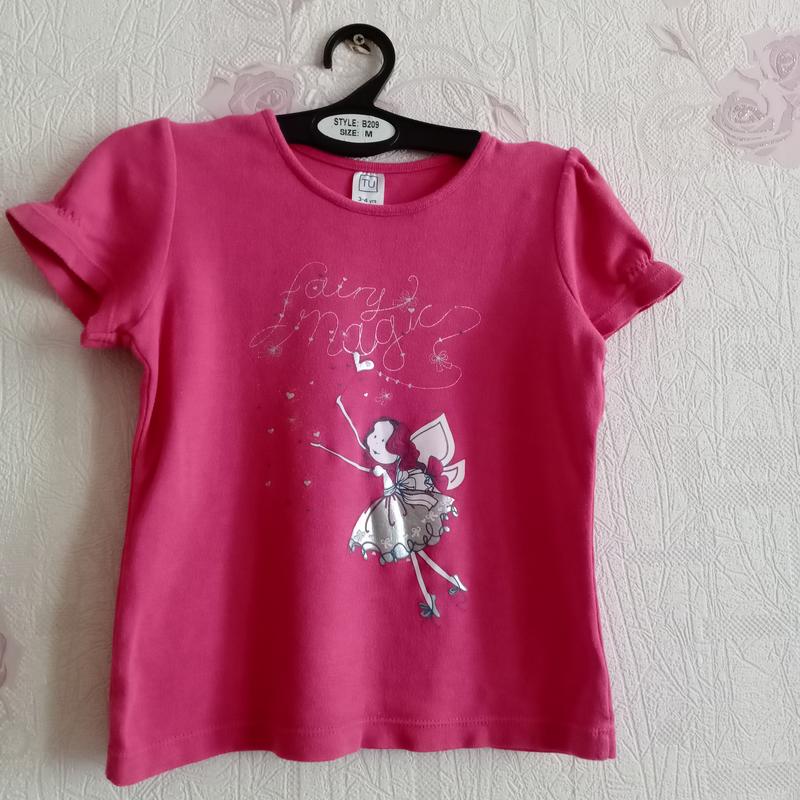 Яркая футболка цвета фуксии с прекрасной феечкой, хлопковая, приятная к телу, как раз то, что нужно на жаркое лето, качество супер, фирменная вещь, на возраст 3-4 года, рост 98-104 см. Перешлю новой или укрпочтой. длина-38см, ширина-33см.