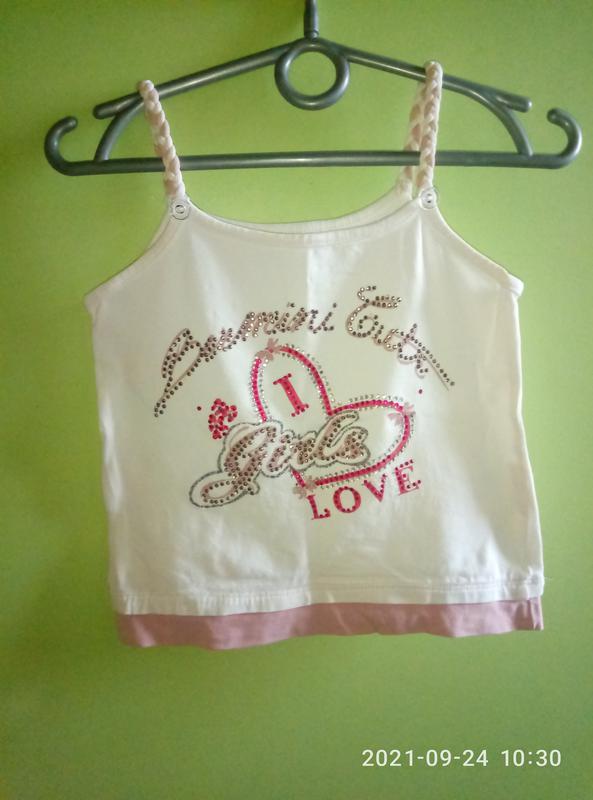 Ніжна маєчка з цікавою та яскравою аплікацією із стразів. Можна носити, як укорочений варіант.