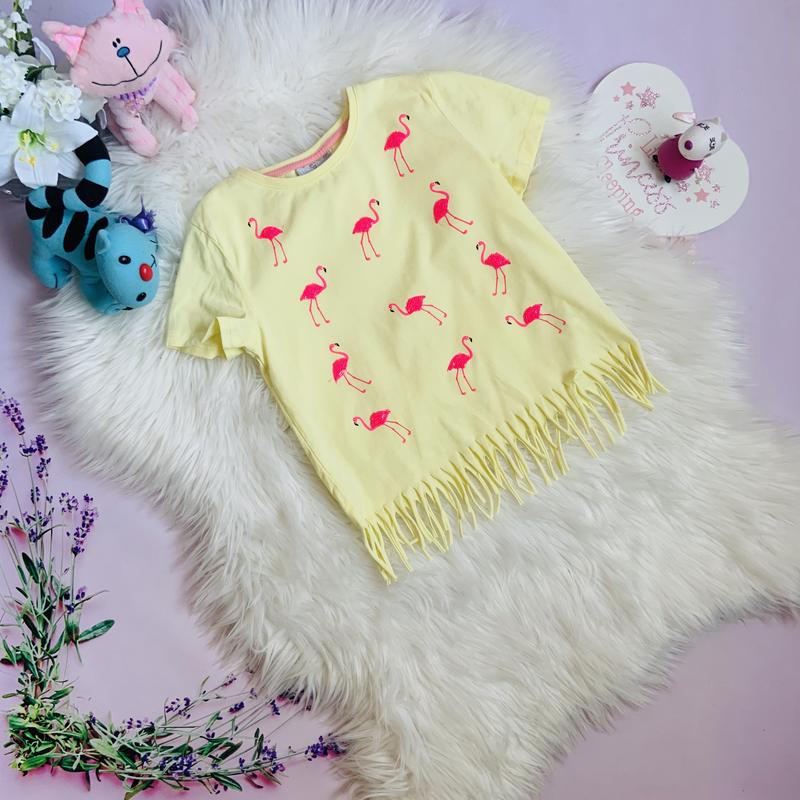 красивая яркая футболка Matalan девочке 7 лет состояние отличное. Цена - 100 гр. Замеры: Общая длина от плеча - 45 см, ширина по спинке под рукавчиками- 35 см
