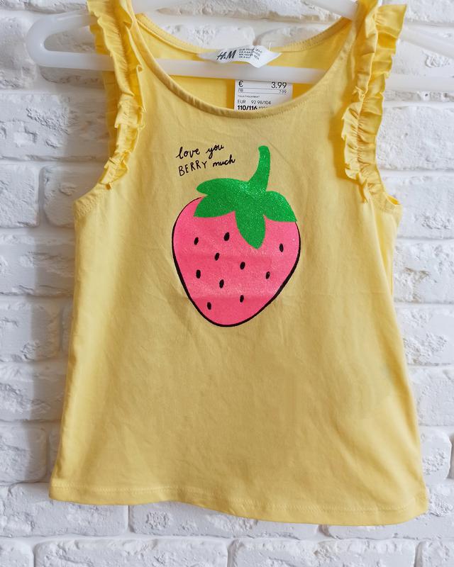 Майка H&M c принтом мороженое с блестками. Размеры: 110/116: длина 43см, ширина 29,5см. 122/128: длина 49см, ширина 34,5см. Состав ткани: 100%котон. Страна-производитель: Бангладеш