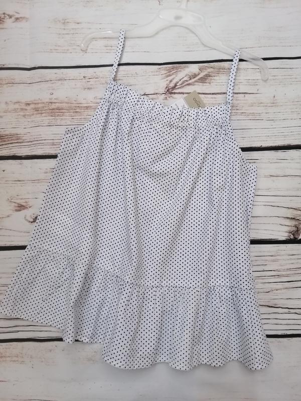 Легкий, красивый топ в мелкий горошек от Mango (Испания), с официального сайта. Новый, с этикеткой.Колир белый, горох- синий. Размеры 11-12 р. (152 см): длина 51 см, 13-14 р. (164 см): длина 55 см