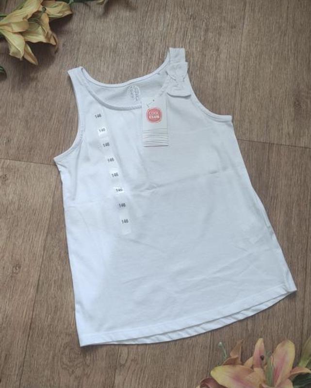 Белая нарядная майка для девочки на рост 146 см. Фирма Cool club. Цвет белоснежный. дополнительно замеры и фото по запросу. Длина 55/57 см, пог 37 см.