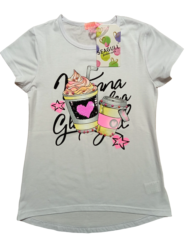 Футболка "Latte". Материал: 60% - хлопок, 35% - полиэстер, 5% - эластан. Производитель - "Seagull", Венгрия. 10 лет/рост 140-146: длина - 48/54 см., ширина - 36/34/41 см., плечи - 30 см., рукав - 10,5 см. 12 лет/рост 152: длина - 52/58 см., ширина - 37/36/43 см., плечи - 33 см., рукав - 11 см.