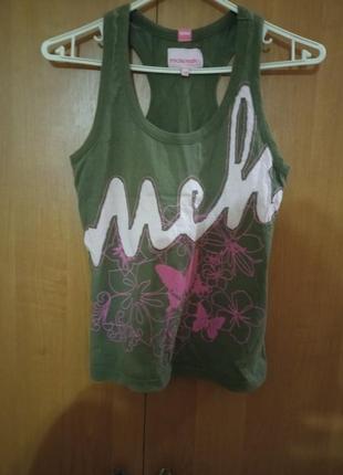 Майка для девочки подростка, в отличном состоянии, Сток. Хлопок трикотаж, цвет хаки. Размер видно на фото. Замеры по запросу. Возможен торг при покупке нескольких товаров, смотрите все мои объявления.