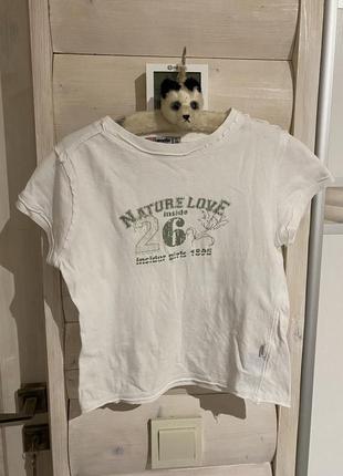 Фото на теле нет Топ не короткий-пупок закрывает Тягучая , плотность средняя Рукава короткие Впереди рисунок Воротник круглый Подойдёт на 8-10 лет ориентируйтесь по замерам Из нюансов-слегка сероватая Длина 41,5 см) Плечи 32,5 см) Пог 35,5 см) Пот 33,2 см) Снизу 36,3 см) Рукав 10 см)
