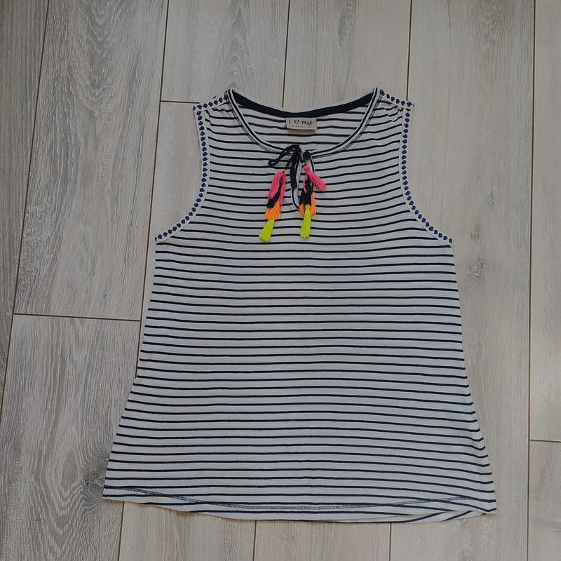 Майка Next 140см, 10 лет, но подойдёт и на рост до 152. Майка в отличном состоянии, без дефектов. Длинна майки от верхнего края 54,55 см. От проймы до проймы 38 см. Цветные завязки на кнопке можно отстегнуть.