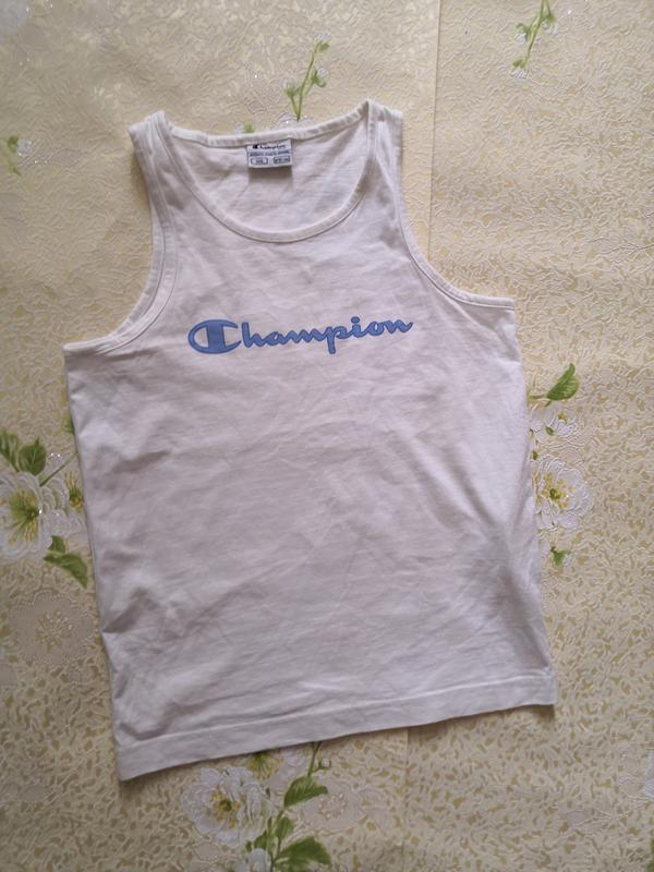 Майка - футболка Champion на 9/10 років, ріст 140 см. Виробник Турція. Склад тканини :100% хлопок. Довжина по середині спинки 52 см, довжина від підпахви вниз по боковому шві 35 см, плечі 23 см, півобхват грудей 39 см, півобхват знизу 39 см.