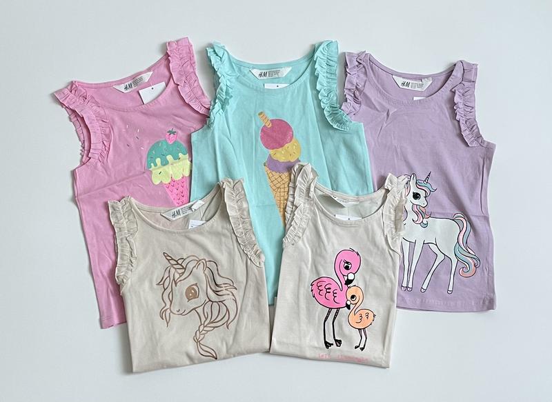 Бавовняні топи для спекотної погоди з яскравими малюнками мають бути у кожної модниці. Розмір 3-4 роки (98-104) бежева з фламінго 4-5 років (104-110) беж єдиноріжка, рожева та м’ятна 180 грн/шт