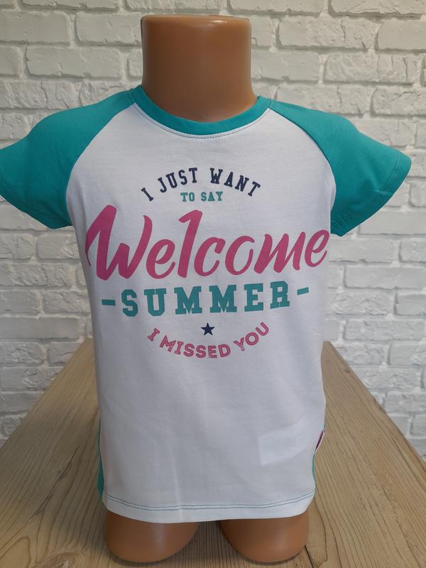 Футболка для девочки Рост 122 см 7 лет ПОГ-32 см ДИ -42 см ( сзади-47 см) Состав: 100 % хлопок Размеры: 104, 122-бирюза 104, 110, 116- синяя