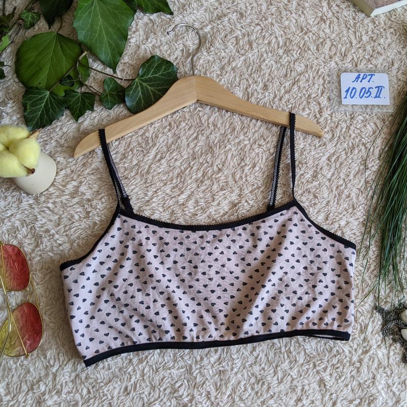 чёрно-розовый однослойный топ сердечки хлопок на бретельках есть регулировка полуобхват груди 37 48 под грудью 33 44 высота изделия без бретелей 17 в отличном состоянии