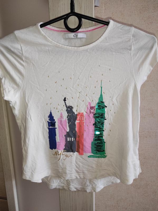 Легусенькая футболка девочке,принт с блёстками , отличное состояние