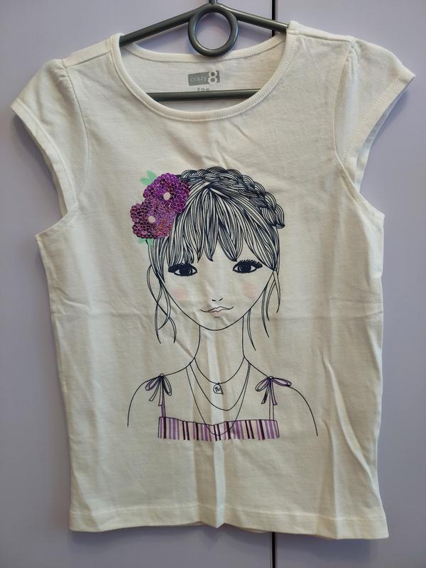 Коттоновая футболка фирмы Crazy8. Украшена пайетками. Размер 5-6 лет. ✔Купите качественные вещи для деток ✔Обирайте наш магазинчик ❤ ✔Доставка Укр и Новая почта. ✔Отправка в день заказа. ✔Смотрите другие наши объявления.