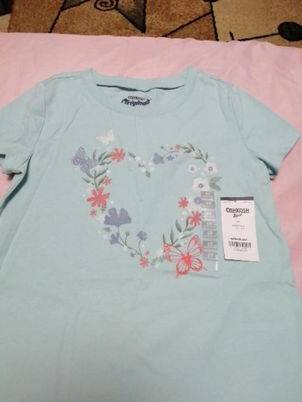 футболка для девочки рост 110-116 см, возраст 5 лет. Замеры: длина изделия 42 см, ширина от проймы до проймы 33 см.