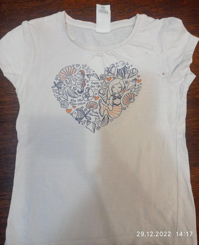 Минимальный заказ у продавца на 100 грн. Фирменная футболка на девочку шести лет. Есть пятнышки, выводить не пробовала. Модель 730