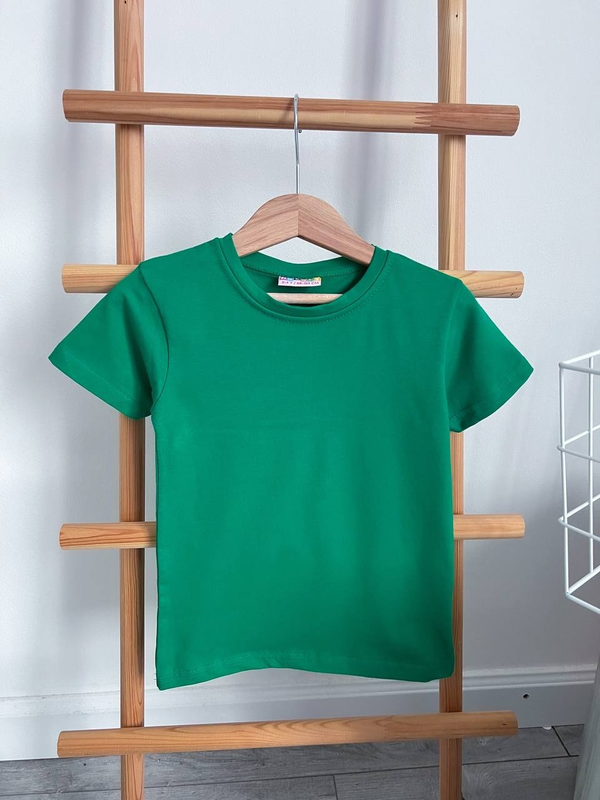 БАЗОВАЯ ФУТБОЛКА ДЛЯ ДЕТОК -Тканина 95% Бавовна, 5% Еластан -Производство Турция -Цвет: ЗЕЛЕНЫЙ Размеры: 2-3 года пог 28 см длина 41 см (3 шт) 3-4 года пог 30 см длина 45 см (3 шт) 5-6 лет пог 32 см длина 47 см (2 шт) 7-8 лет пог 36 см длина 50 см (3 шт)