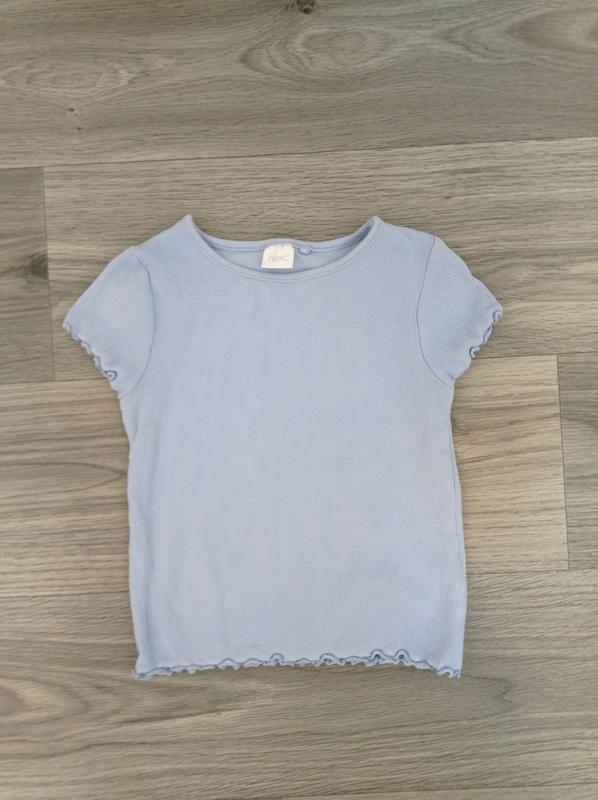 Футболка Next рубчик Размер 98 2/3 года (одето на ребенка 4/104) Состояние отличное Замеры: Рукав от горла12 см от плеча 7.5 см от подмышки 2 см Длинна полностью по спинке 33 см от плеча вниз 33 см ПОГ 26.5 см Есть ещё футболки на 2/3 и 3/4 года
