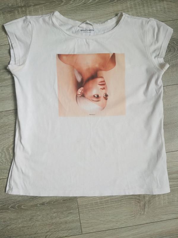 Футболка с Ariana Grande от H&M В нормальном состоянии, есть следы ношения На рост 150-170 см на возраст 14+ Длина 52 см, ПОГ 45 см, по плечам 35 см